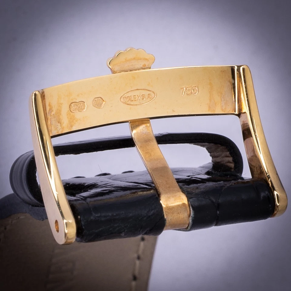 • Buckle: 18K Yellow Gold tang buckle