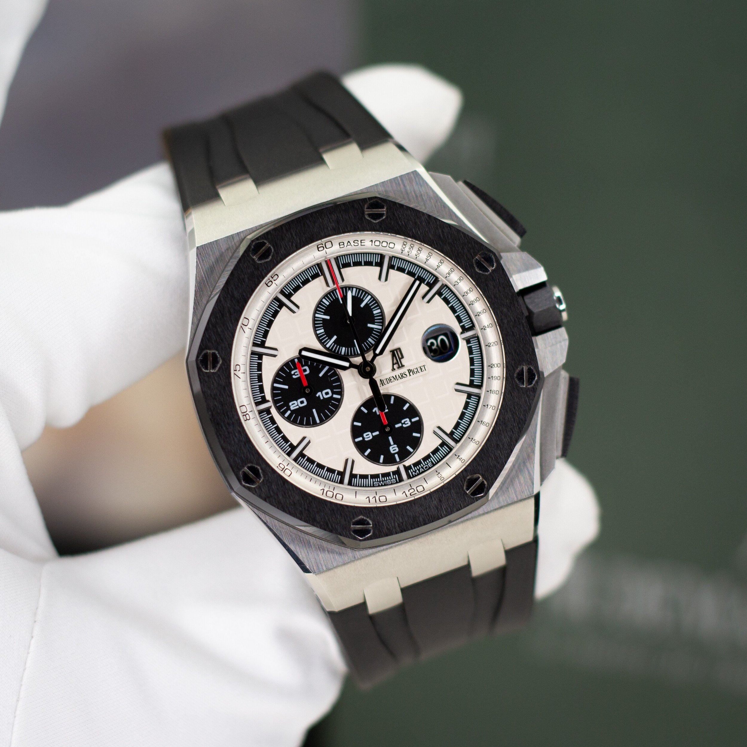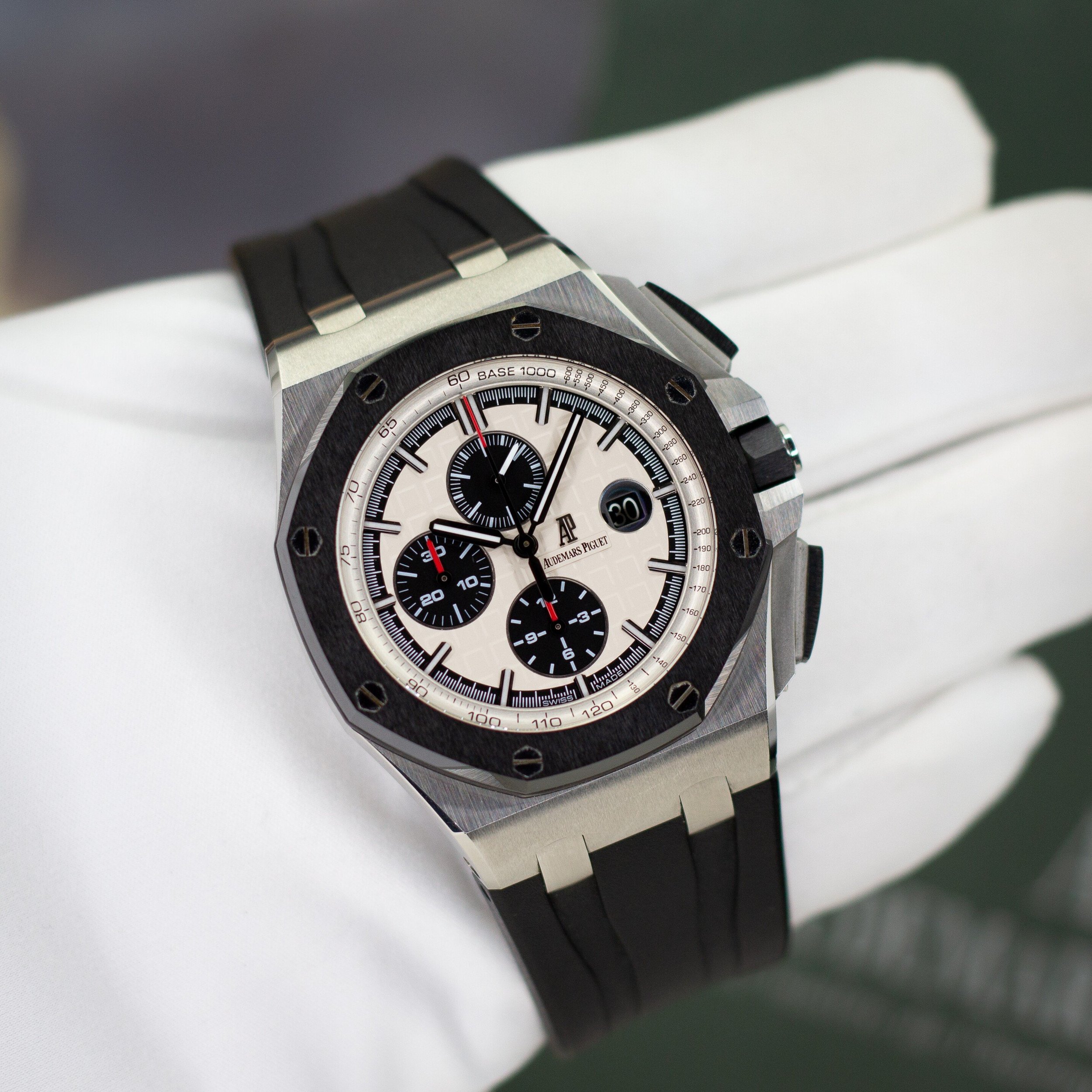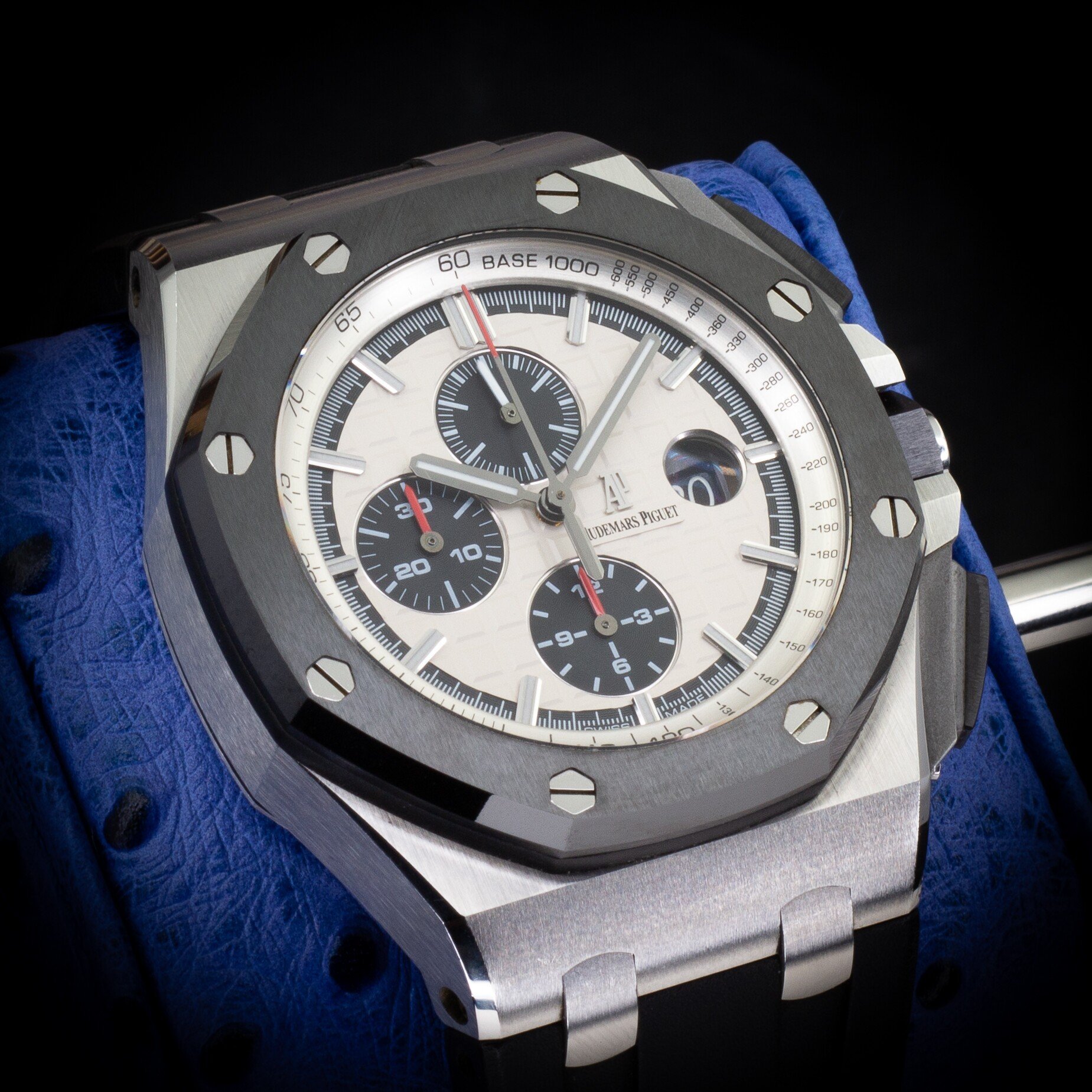 H-series production from 2012 marks the earliest generation of the 44mm Royal Oak Offshore Panda, making this example especially appealing to collectors. These first-wave models introduced the ceramic bezel upgrade and AP’s in-house Caliber 3126/3840, setting the design language for all later Offshore chronographs. Owning an H-serial Panda connects the collector directly to the inaugural years of this iconic reference, which adds historical importance compared to later production runs.