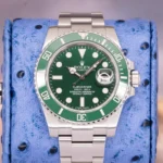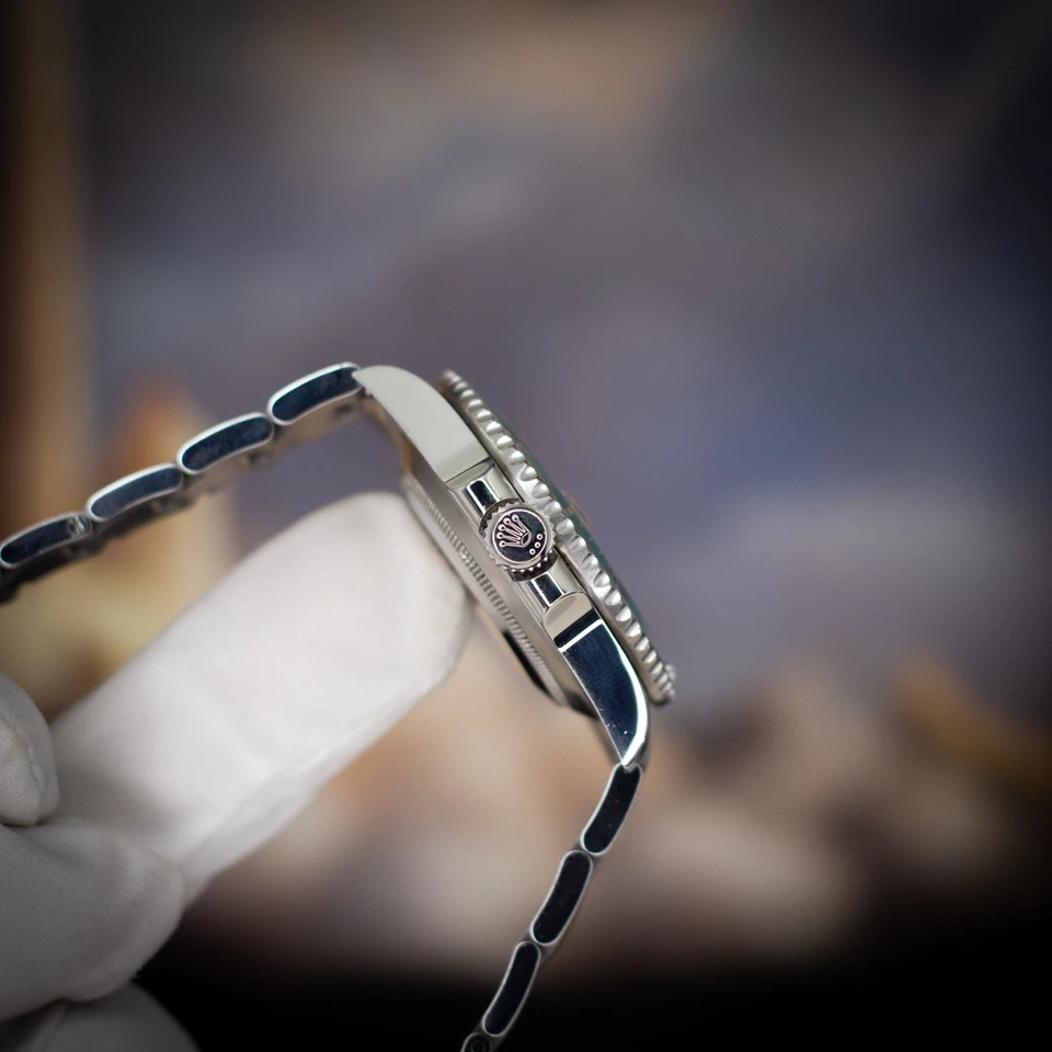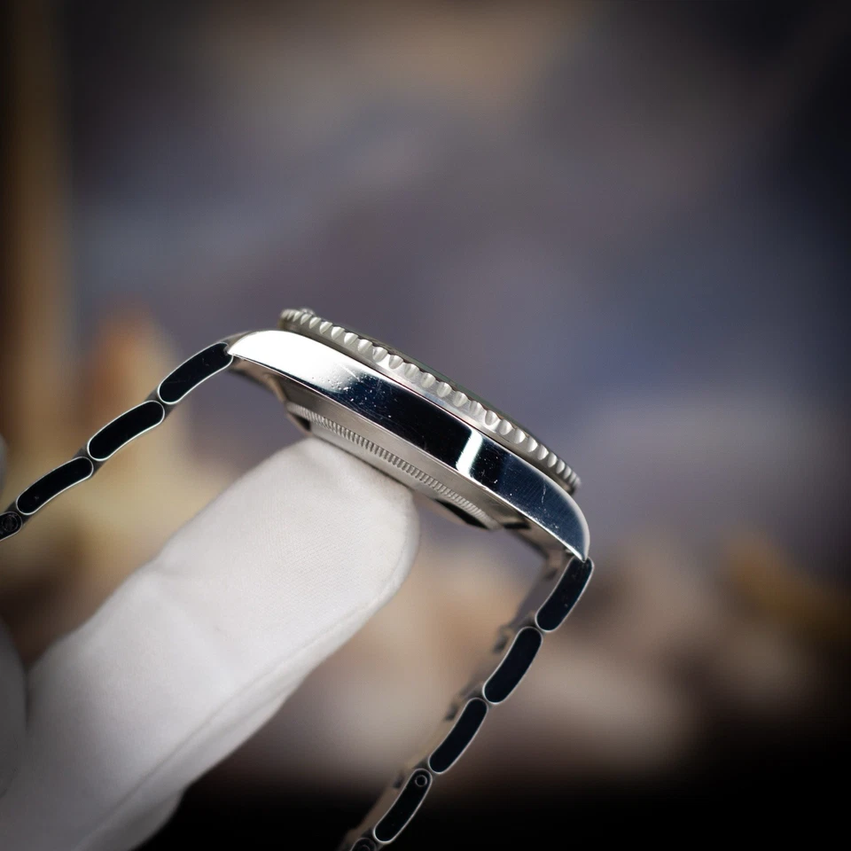 Crafted from 904L Oystersteel, the case retains the traditional Submariner proportions with the added durability of a ceramic bezel, Chromalight lume, and solid-link Oyster bracelet. The watch is powered by the proven Rolex Caliber 3135, providing a 48-hour power reserve and the reliability that defined Rolex’s tool-watch era for decades.