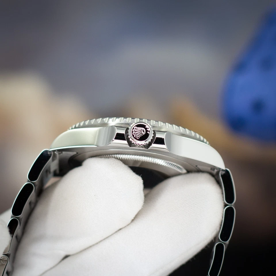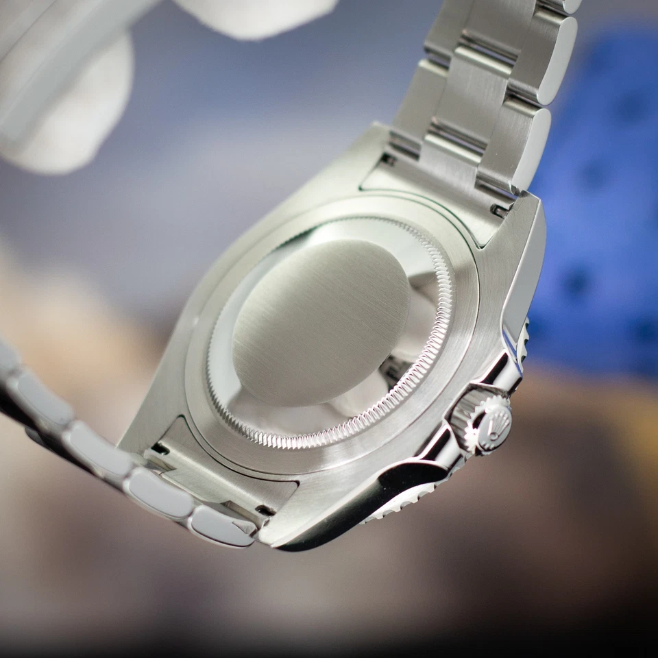 This example remains in excellent pre-owned condition, displaying minimal wear from careful use. The 40 mm Oystersteel case retains sharp lines and strong factory brushing, paired with a solid-link Oyster bracelet featuring its original Oysterlock safety clasp and Easylink comfort extension.