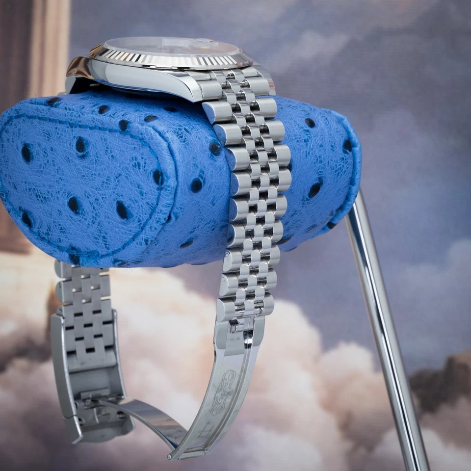 The dial is a standout Rolex’s grey sunburst finish shifts from charcoal to bright silver depending on the light, with factory diamond indices providing understated luxury without straying from the traditional Datejust identity. Paired with the Jubilee bracelet, the watch balances elegance and everyday practicality.