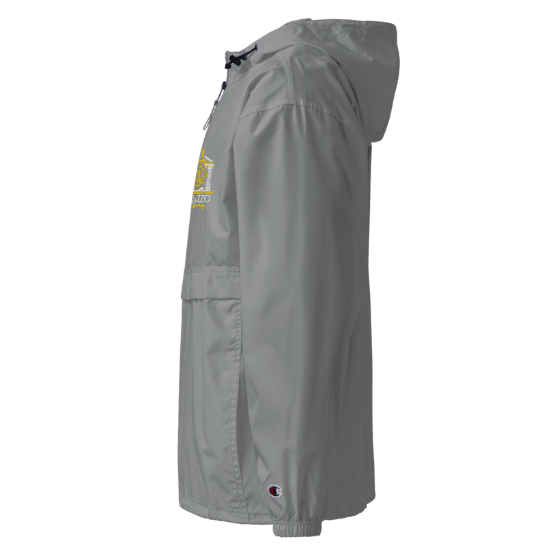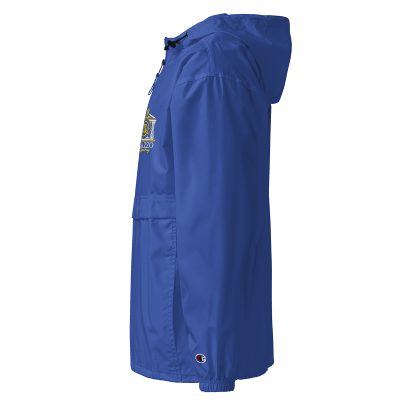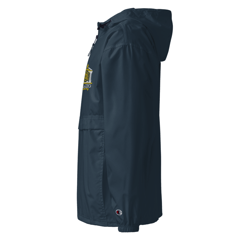 Protect yourself from the elements with this Champion packable jacket. This wind and rain resistant polyester jacket with a detailed embroidery design has a practical hood, front kangaroo pocket, and zipped pouch pocket which you can pull out and use to scrunch the jacket into for convenient storage.