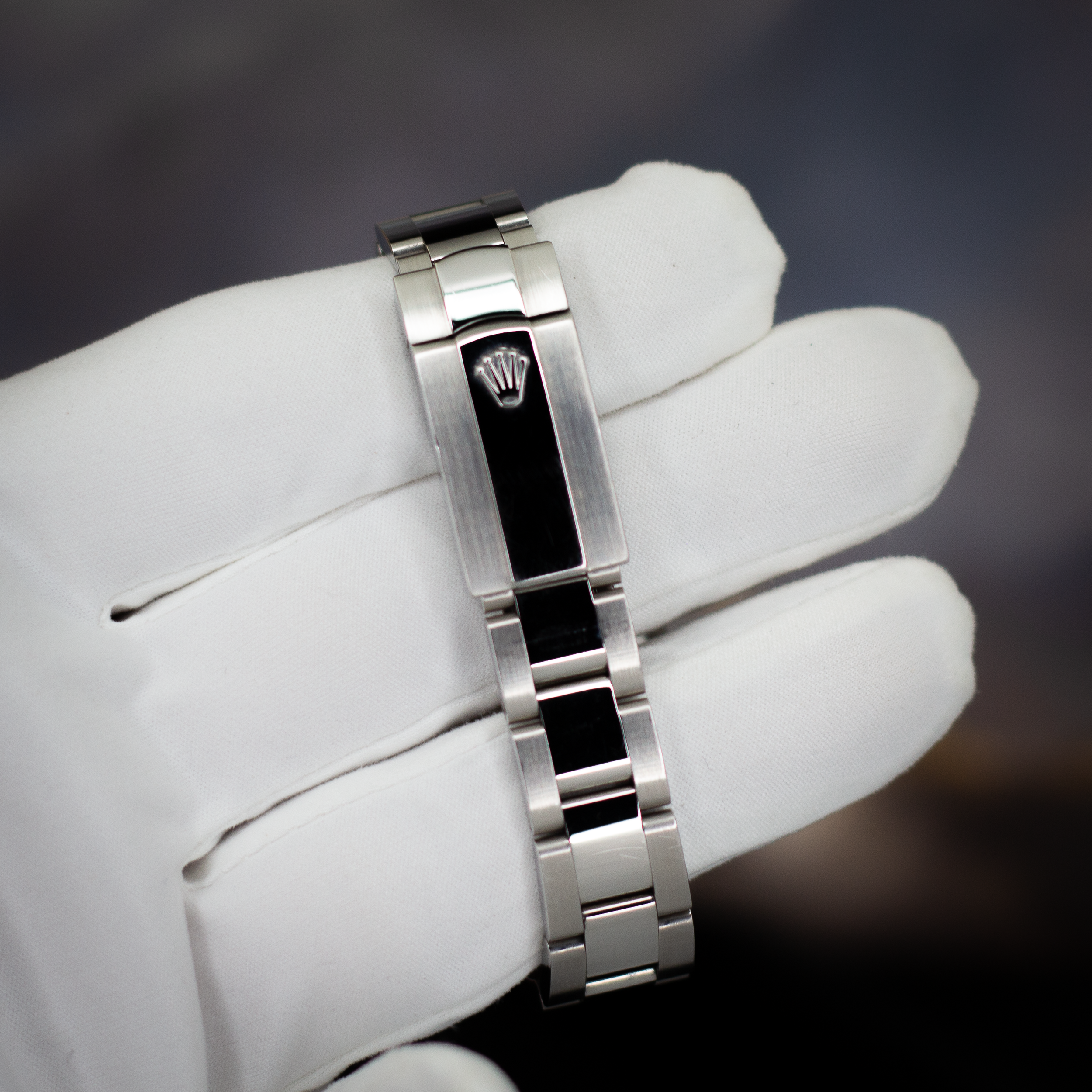 Powered by the Rolex Caliber 2235 automatic movement, this COSC-certified chronometer is reliable and precise, offering a 48-hour power reserve. The stainless steel Oyster bracelet combines brushed outer links with polished centers, secured by an Oysterclasp. Water resistance to 100 meters ensures durability for daily wear.