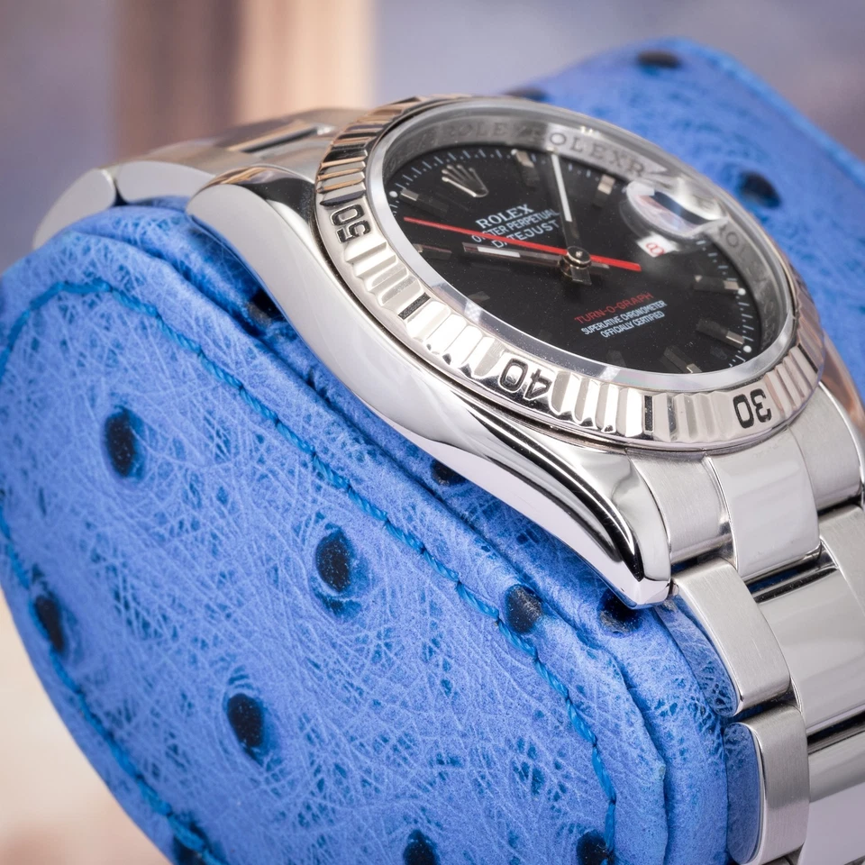 he Rolex Datejust Turn-O-Graph reference 116264 occupies a distinct and historically important position in the Datejust lineage combining classic Rolex refinement with genuine tool-watch functionality. Long regarded as the spiritual predecessor to the Submariner, the Turn-O-Graph was the first Datejust fitted with a rotating bezel, earning its reputation as the original “gentleman’s sport watch.”