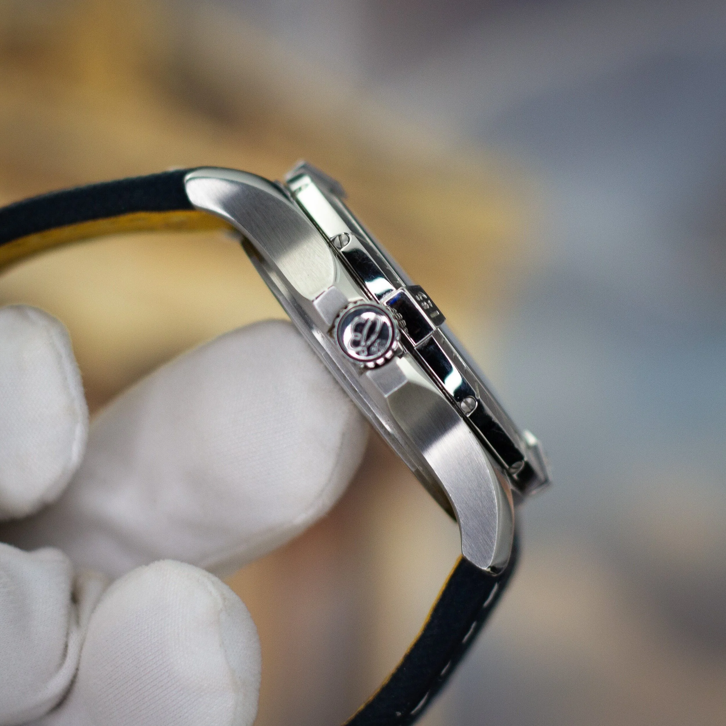 This example remains in good pre-owned condition, showing light wear on the bezel and a small hairline on the anti-reflective coating near 12 o’clock, only visible under direct light. The watch has been timegrapher tested at +2 seconds/day with 313 amplitude, confirming excellent mechanical performance.